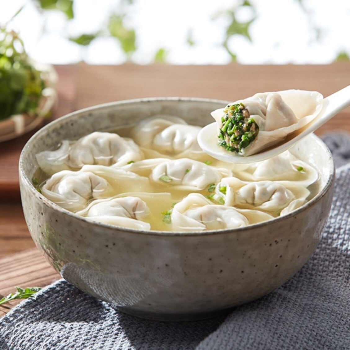 一般的に日本で食べられているワンタンよりも大きく、ナズナと豚肉がぎっしりと詰まっています。ボリュームがあり、満足感のあるワンタンです。