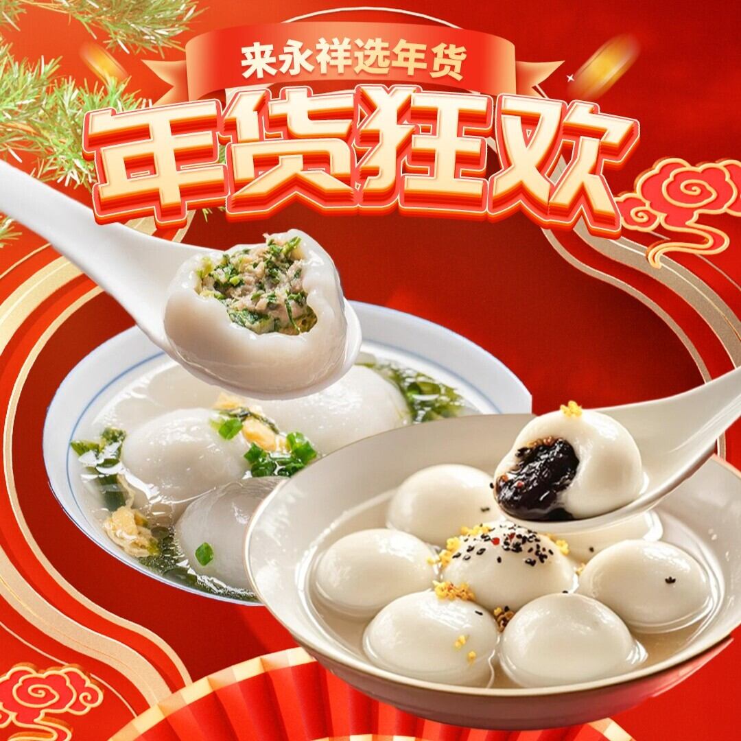 芝麻汤圆+荠菜汤圆